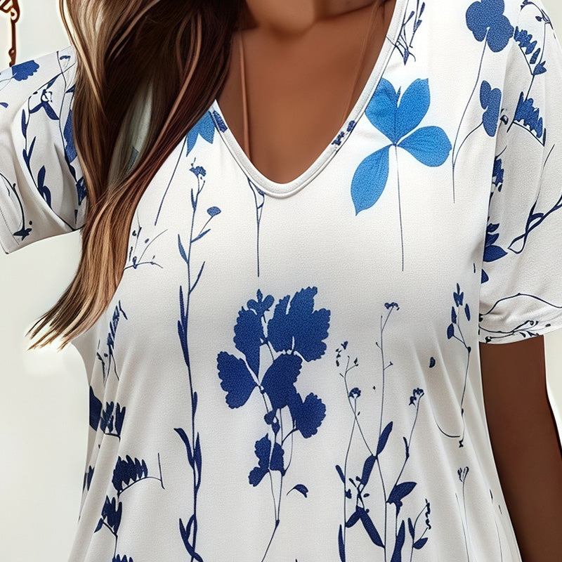 Inclus dans le paquet : 1*Chemise à imprimé floral décontracté à manches courtes pour femmes