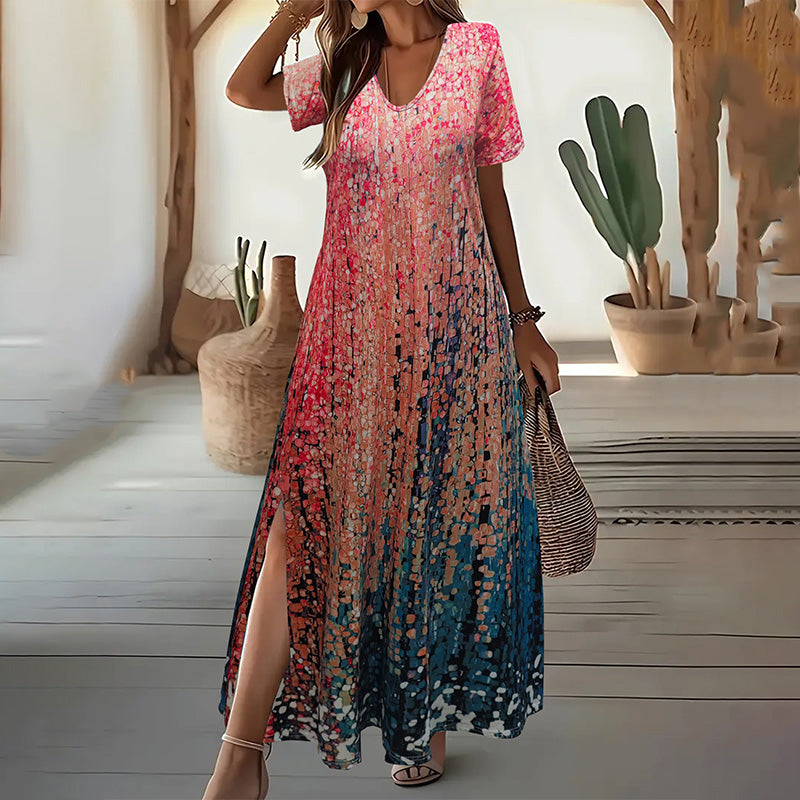 Convient à de multiples occasions : transition transparente de la journée à la soirée. Qu'il s'agisse d'un pique-nique, d'une virée shopping ou d'un dîner entre amis, cette robe s'adapte à votre style de vie avec un charme sans effort.