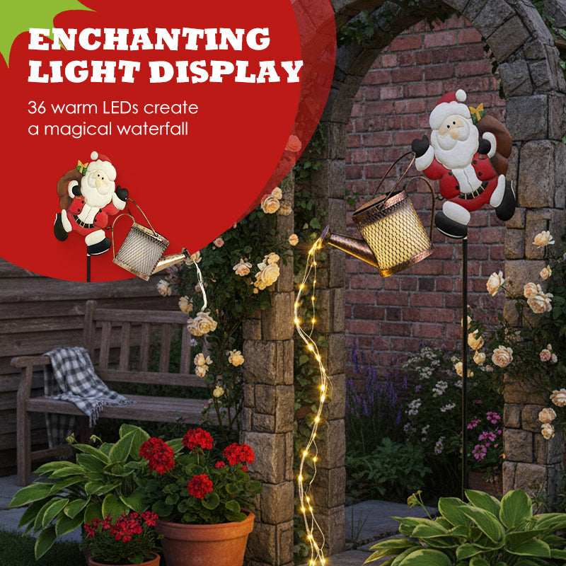 UNE CASCADE DE LUMIÈRE ET D'ÉMERVEILLEMENT - Regardez la magie opérer lorsque 36 LED blanc chaud jaillissent de l'arrosoir du Père Noël comme une cascade scintillante. La douce lueur danse dans la nuit, transformant votre jardin en un conte de fées de Noël étincelant.
