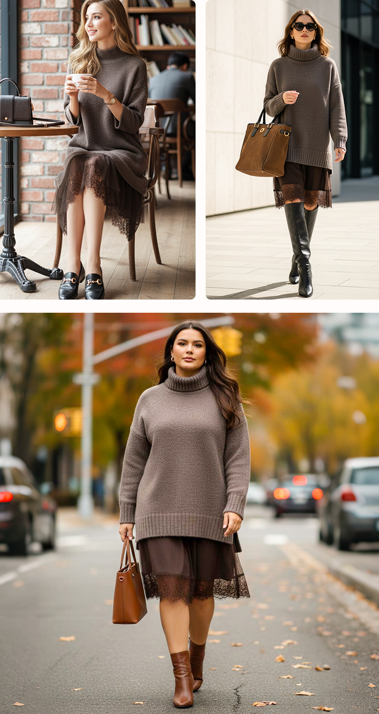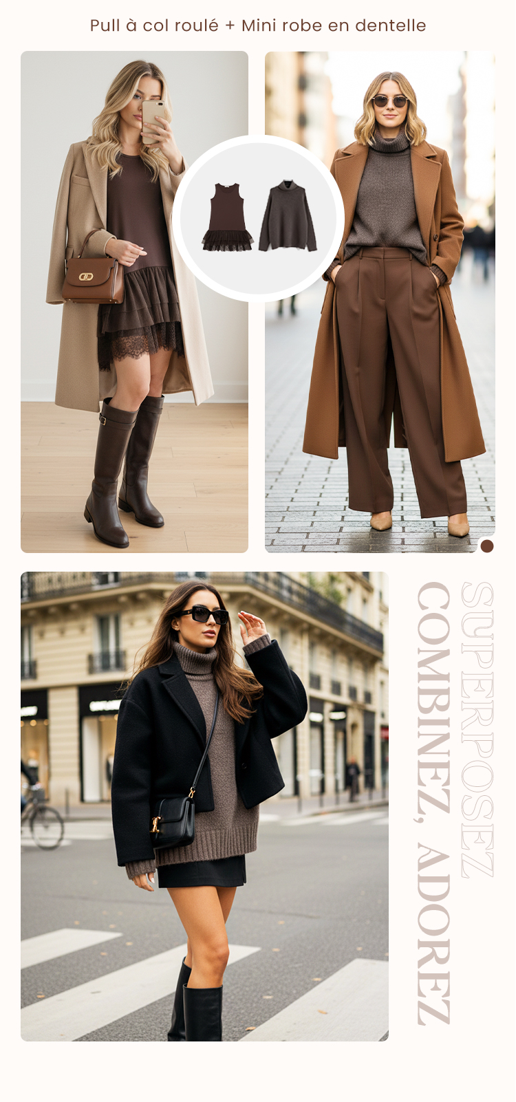 Pull à col haut et mini-robe pour femme