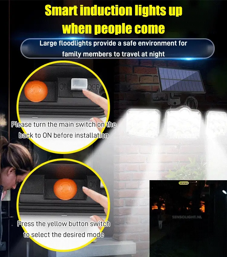 Applique murale solaire à trois têtes