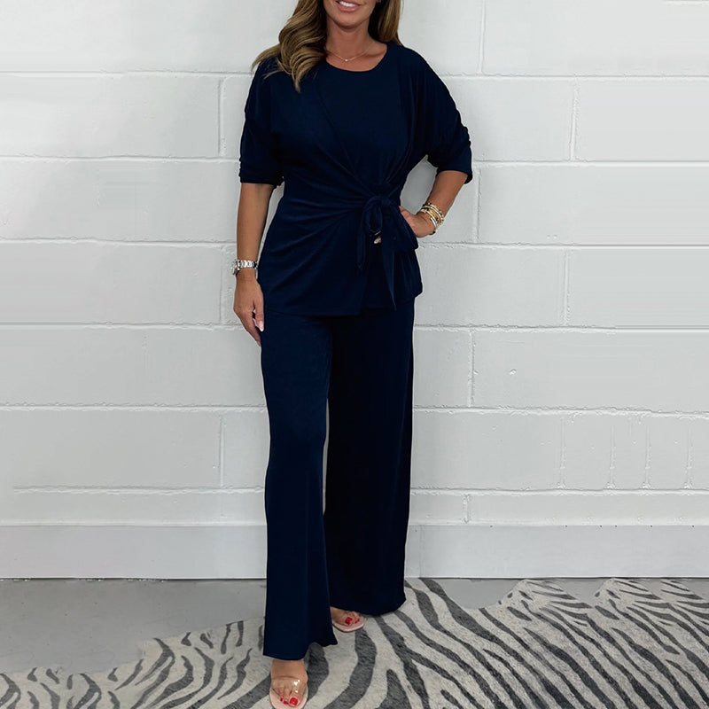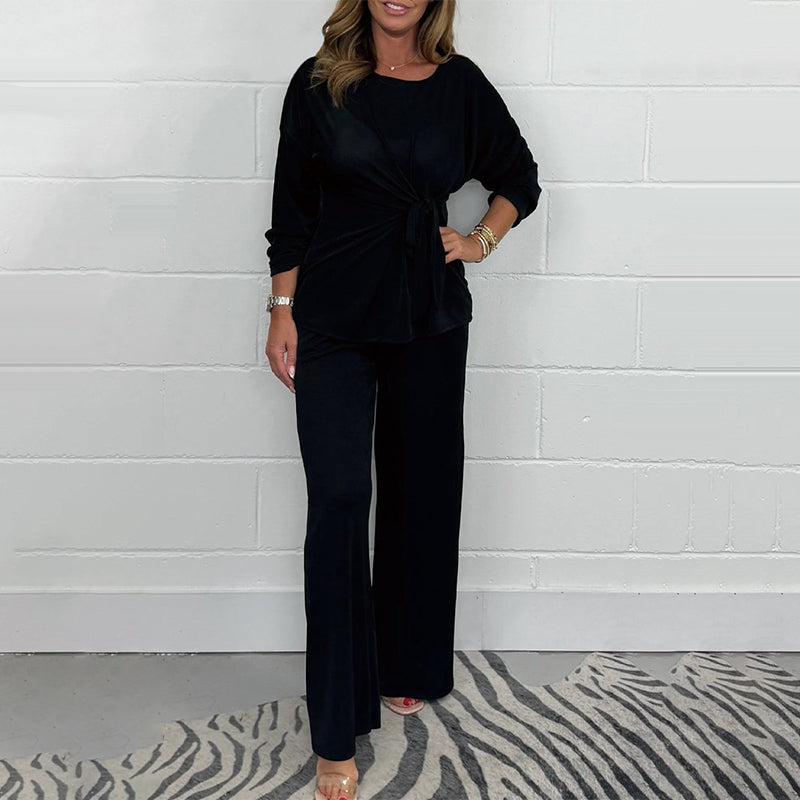 PANTALONS À JAMBES LARGES TENDANCE : La coupe fluide permet une liberté de mouvement sans restriction et s'associe parfaitement à la tunique, créant une tenue équilibrée idéale pour passer du jour à la nuit.