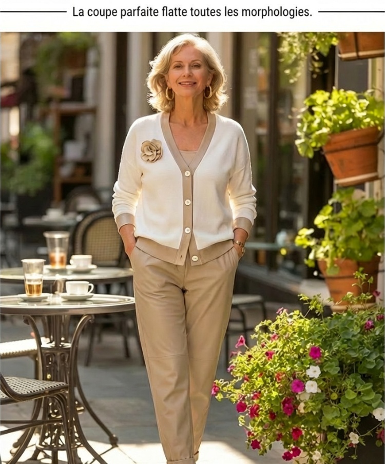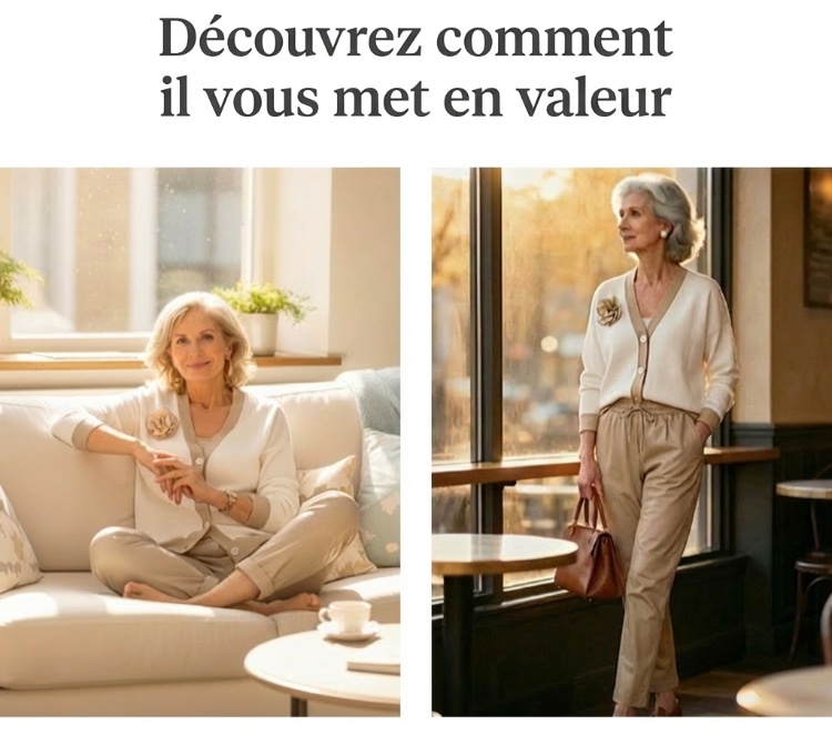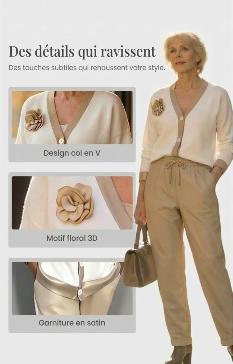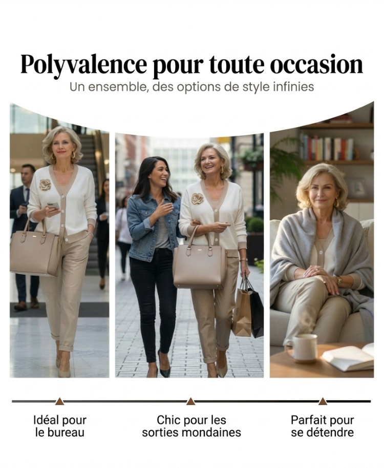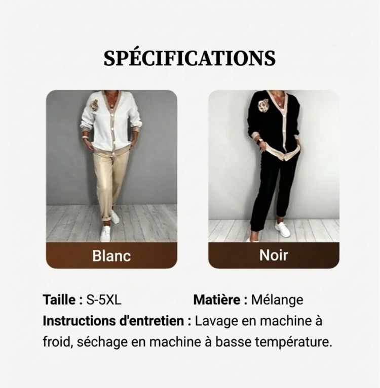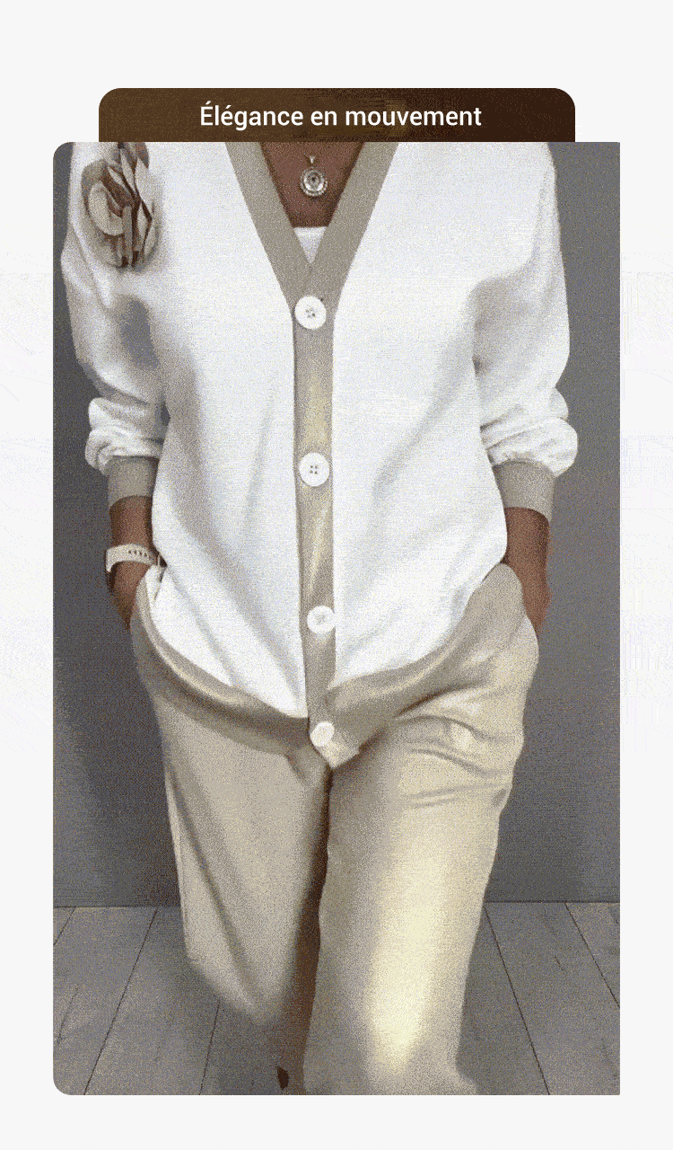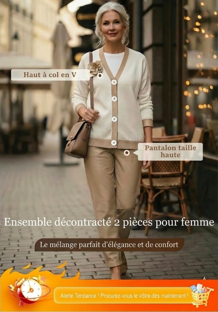 🔥Ensemble décontracté pour femme avec haut à col en V et pantalon taille haute