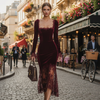 ENCOLURE CARRÉE FLATTERANTE - L'encolure carrée d'inspiration vintage encadre magnifiquement les clavicules et le décolleté, rehaussant votre élégance naturelle et vous offrant un look classique mais captivant, idéal pour les occasions formelles.