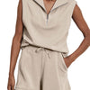 Combinaison d'été deux pièces sans manches à demi-fermeture éclair pour femmes